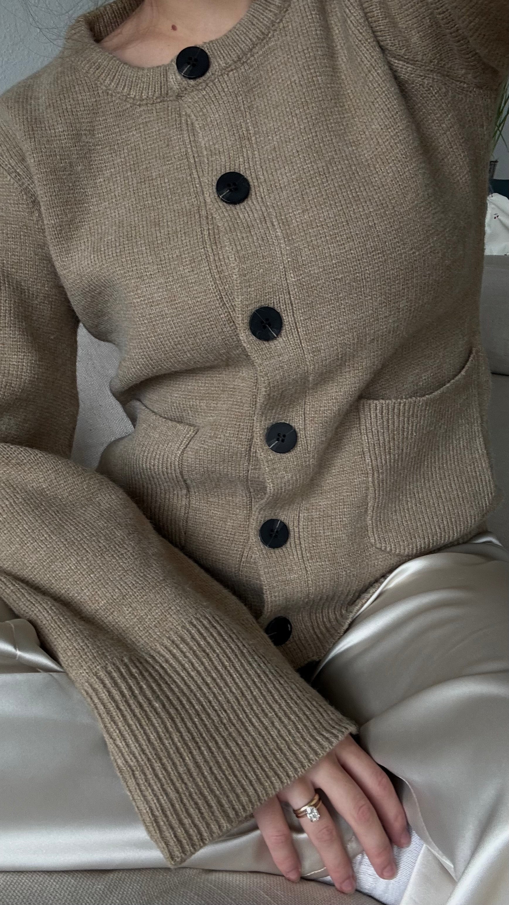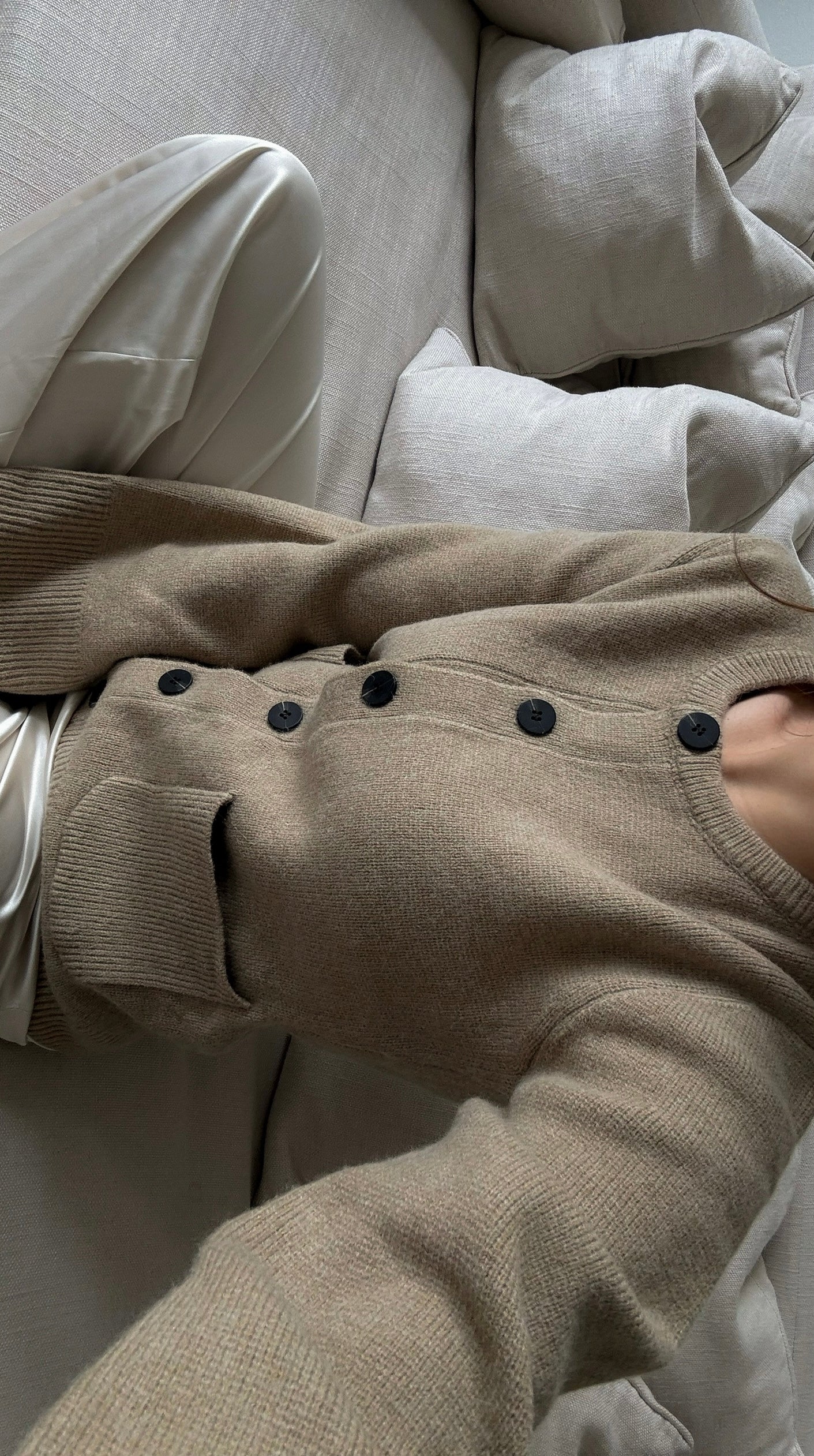 Designed for everyday wear, it combines warmth, simplicity, and understated elegance — the kind of cardigan you’ll reach for season after season.