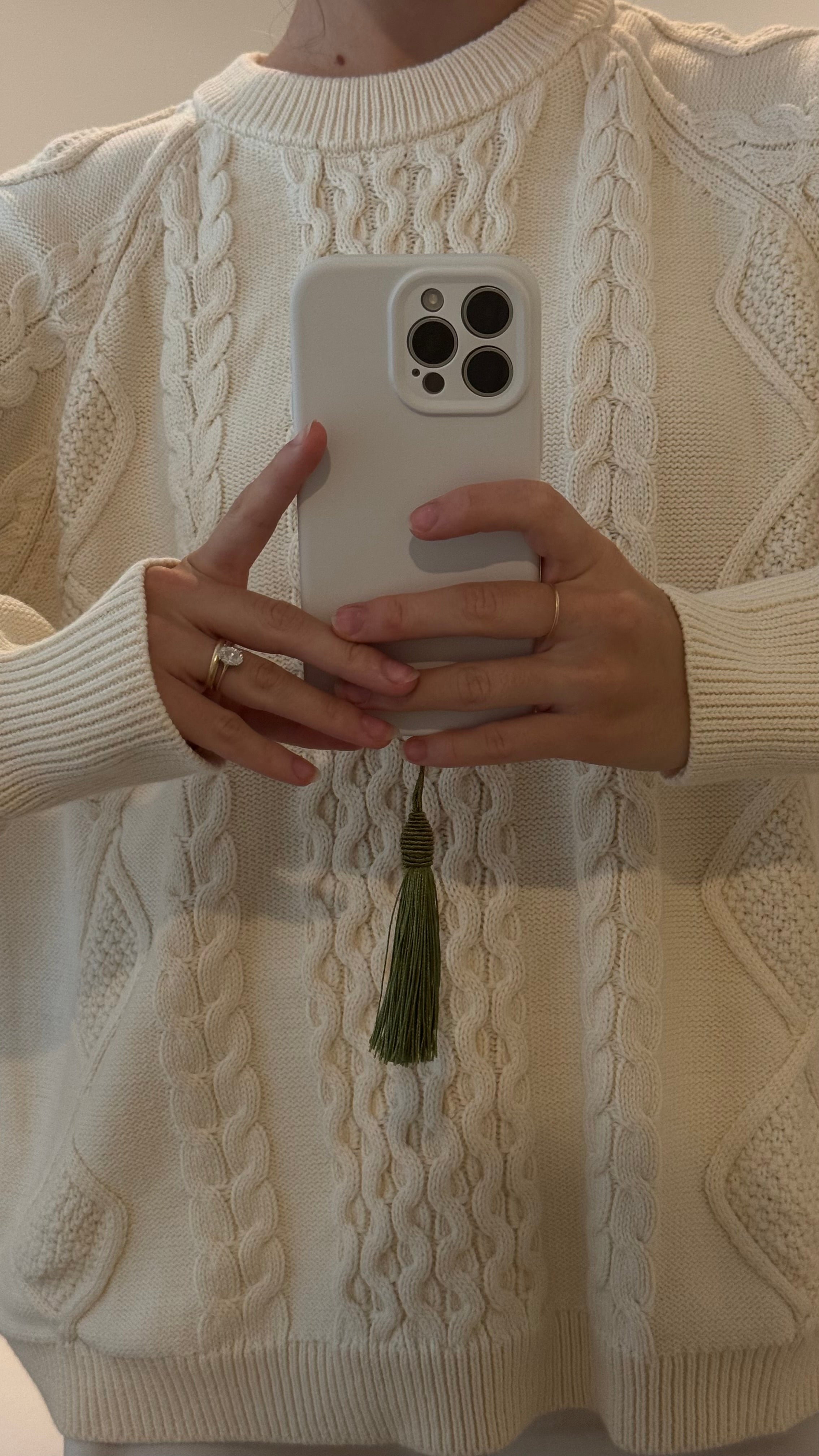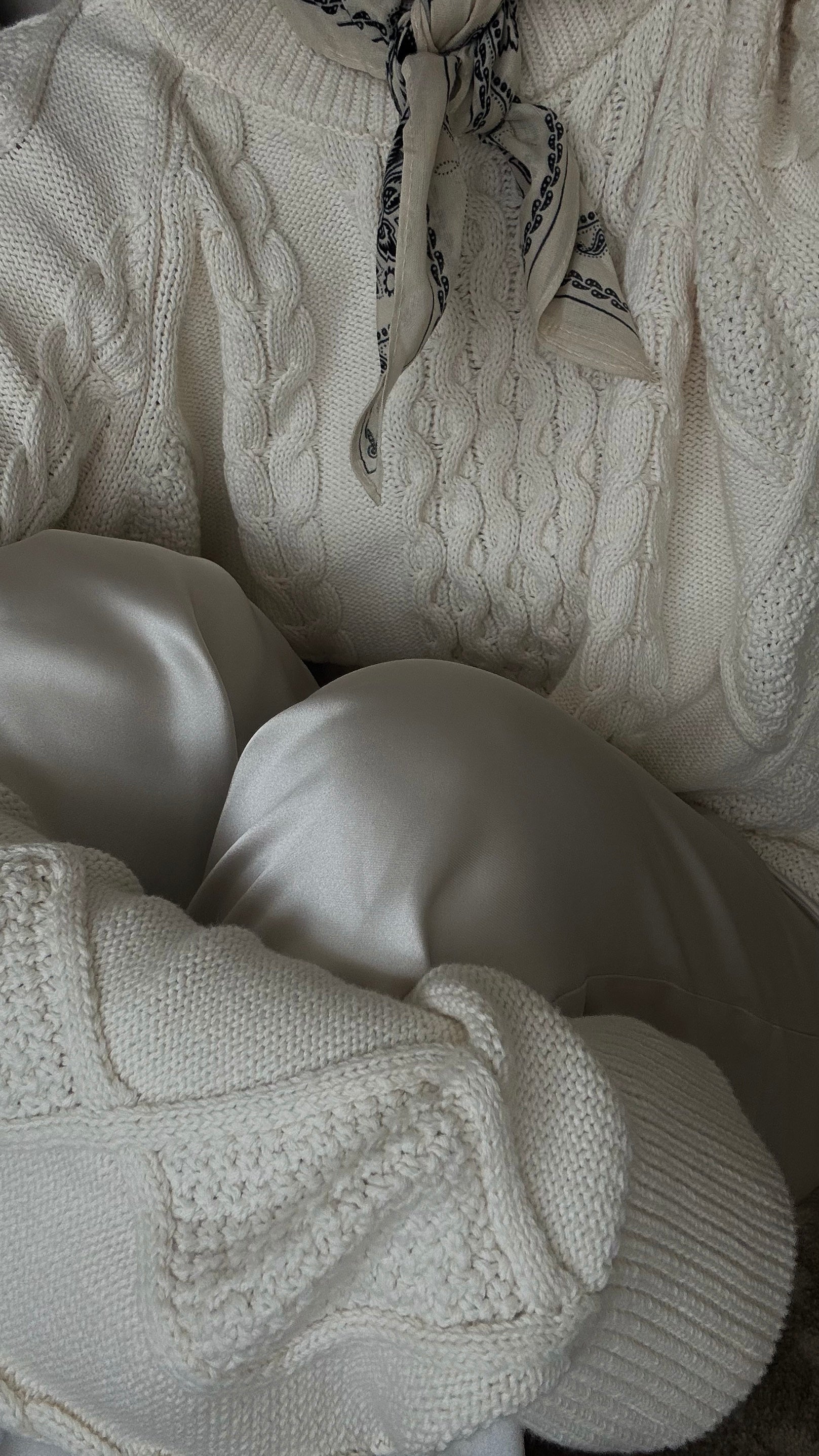 Thoughtful cable detailing and a relaxed silhouette create a piece that feels both timeless and elevated—ideal for layering, lounging, or pairing with your favorite tailored trousers.