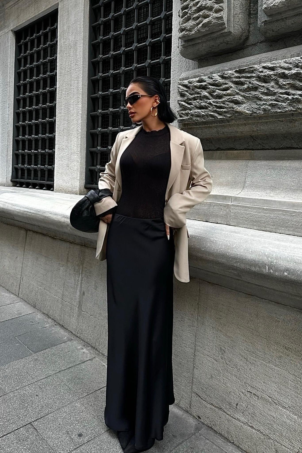 Charlie Black Satin Maxi Skirt