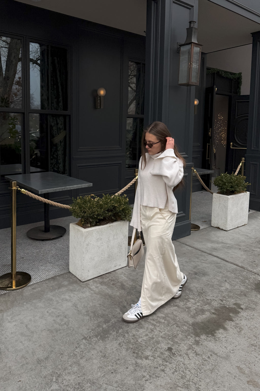 Connie Cream Pants and Asymmetrical Cut Sweater Set - FINAL SALE