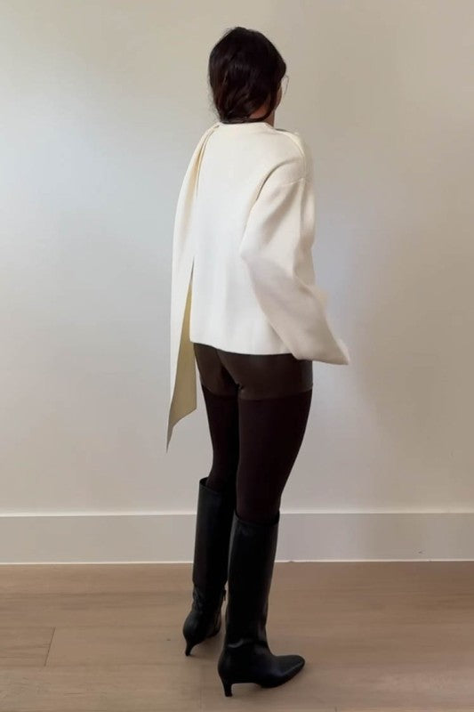 - Minimalist oversized sweater with a modern asymmetric wrap design